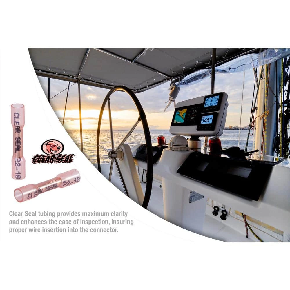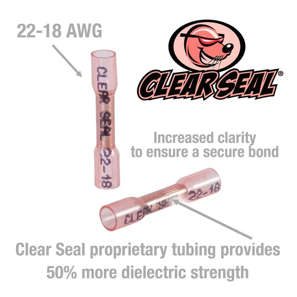 Clear Seal Butt Splice terminal features increased clarity, better abrasion resistance, greater tensile strength and improved shrink times. The color coded tubing offers clarity for visual inspection of the wire and crimp. Ideal terminal for harsh environments like automotive, marine/watercraft, off-road vehicles and construction equipment.