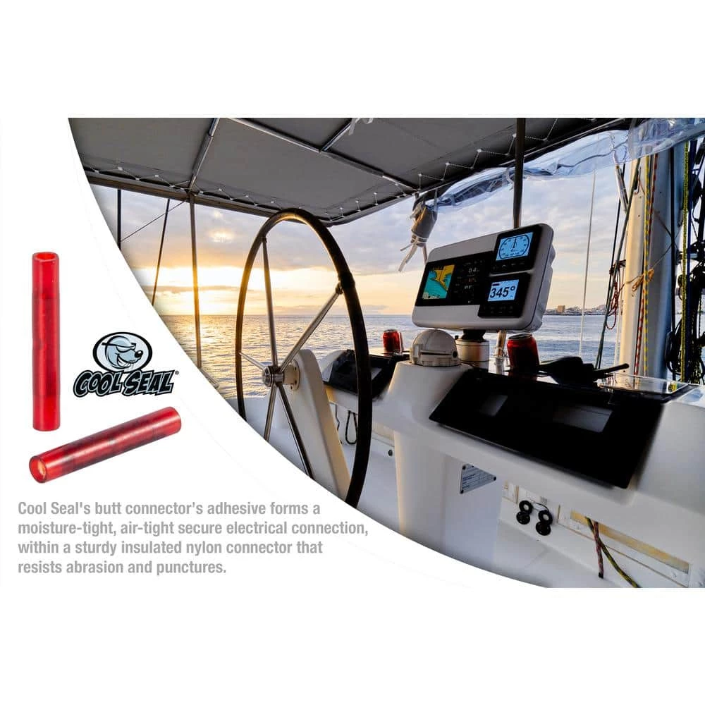 Cool Seal Butt Splice is a heat-less, solderless terminal, that installs in a fraction of the time of comparable heat seal connectors. Simply strip the wire and crimp, activating the sealant, to create an environmentally sealed connection. The innovative sealant prevents the ingress of moisture and air, the nylon insulation provides maximum abrasion and puncture resistance, while the seamless, 99.9% ETP, copper connector offers optimal electrical conductivity. Requires no torch or heat gun for installation.
