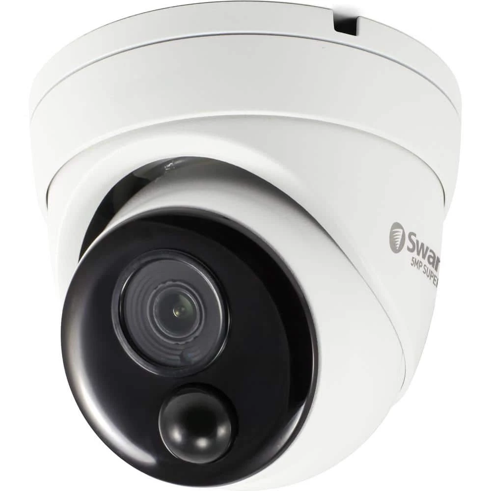 Swann’s True Detect PIR Thermal Sensing technology detects motion by heat, such as from people and cars, to trigger recording and push notifications. This virtually eliminates false triggers, like plants moving with the wind, to only capture events with security relevance. This 4K Ultra HD security camera is the perfect addition to your Swann NVR-8580 to cover blind spots. The sturdy aluminum construction is built tough for the outdoors or indoors with an IP66 weatherproof rating. The camera comes with a roll of 18 m Ethernet cable for connecting the camera to the NVR. This high-end 4K camera comes with advanced software analytics that can help you prevent crime. Auto recording and alerts are triggered by Face Detection, Line Crossing Detection, Perimeter Intrusion Detection, Static Object Detection, Person Detection and Crossing Counter. See in the dark up to 45 m with the camera’s powerful infrared night vision. The built-in microphone adds audio recording for that extra layer of valuable evidence to your surveillance system.