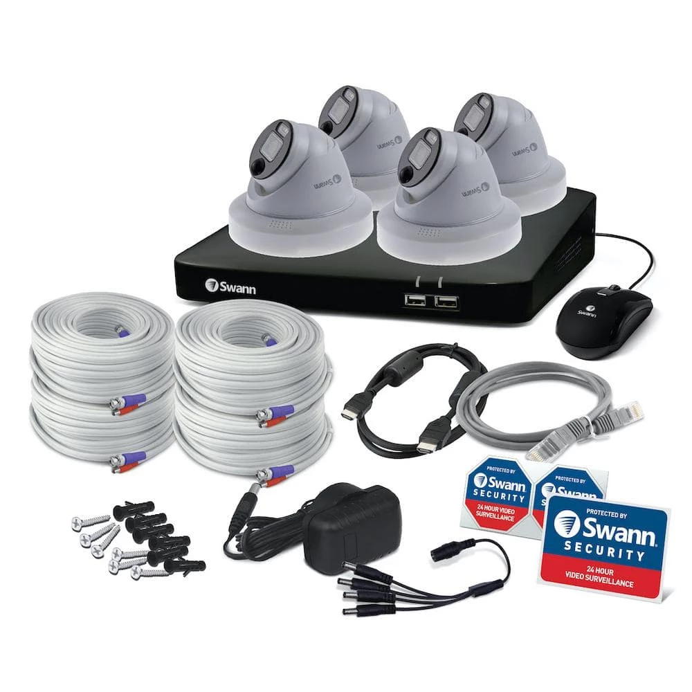 The Swann Enforcer has crime-fighting features other security systems dream about. True Detect senses heat and motion to trigger red and blue police-style flashing lights and bright spotlights to intimidate intruders and prevent crime. Activity also triggers reliable push notifications, with fewer false alarms and free local and cloud recording, with no ongoing fees ever. The 4 Enforcer cameras make it possible to see faces and license plates with 1080p Full HD video and powerful digital zoom to watch over entrances, yards, driveways, parking lots, storerooms and more. Know what’s happening at any hour, as the cameras also display state-of-the-art Night2Day technology, providing full spectrum color night vision, to turn night into day. Mount the cameras inside or outdoors as their IP66-rated weatherproof design can withstand rain, snow and heat, all year round. The DVR has 8-channels so you can expand your system with 2 more cameras to increase coverage around your property or business. Enjoy free local recording on the massive 1TB hard drive with no fees ever and the option to backup video securely to your Dropbox account. With the Swann Security app, you can even watch live or playback video on your smartphone from anywhere in the world. You can also speak to see via the Google Assistant or Alexa. Everything’s included in the pack, including a bonus security yard sign, as a further intrusion deterrent.