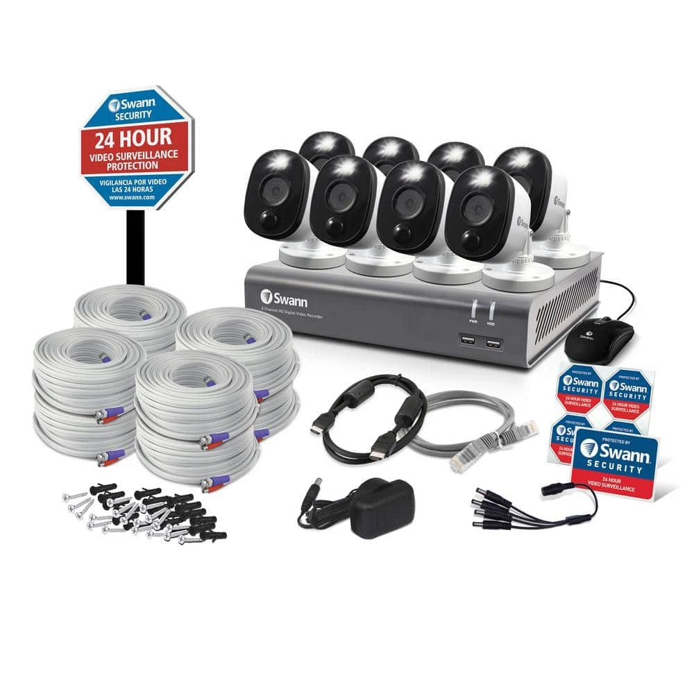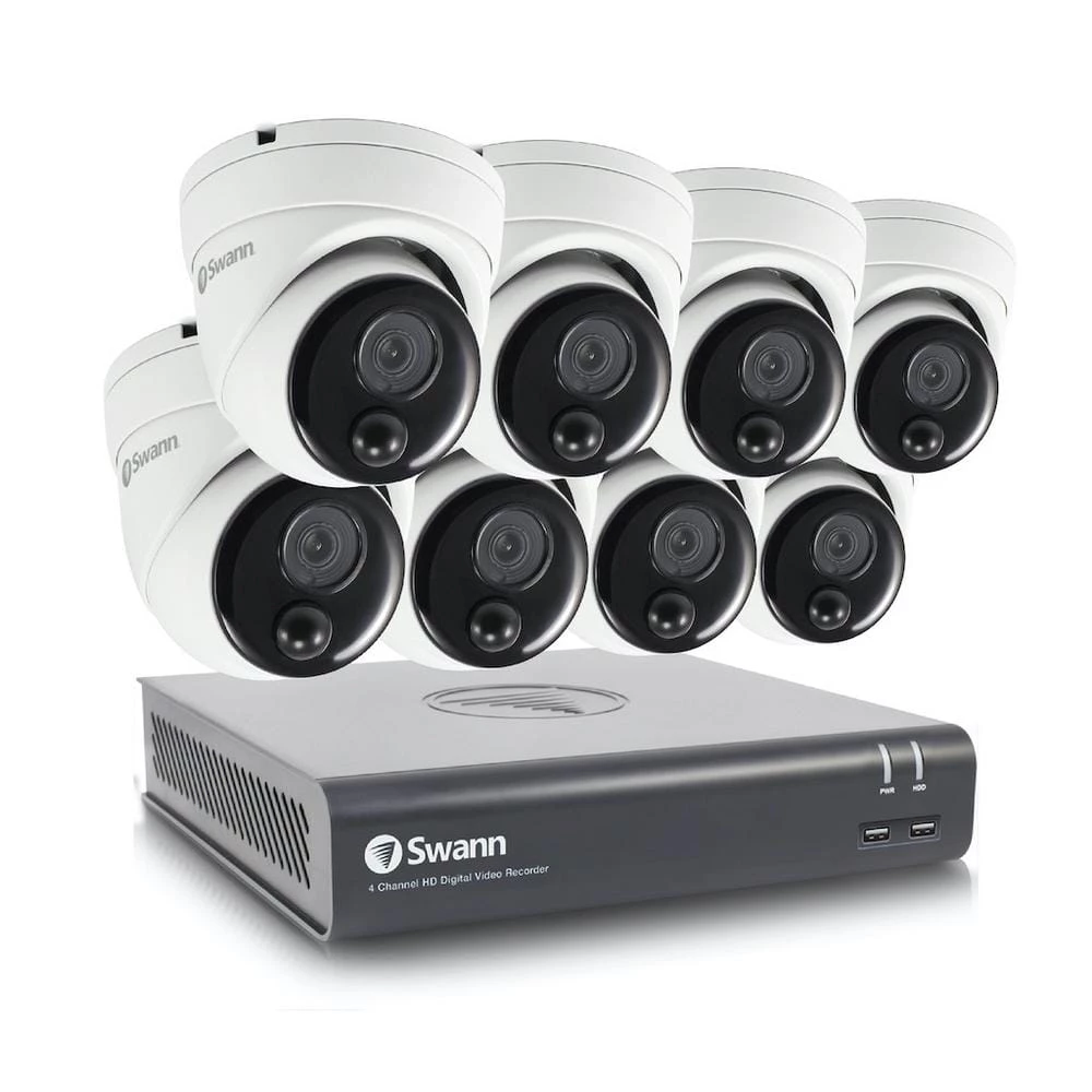 This security system is packed with the latest CCTV technology, such as weatherproof cameras with colored night vision, bright warning lights, push notifications, Dropbox integration and compatibility with the Google Assistant for voice control. Get amazing detail with 1080P Full HD. See your home on your phone, live or playback, from anywhere with the Swann Security app, while the massive pre-installed hard drive can store months of footage with no ongoing fees ever.