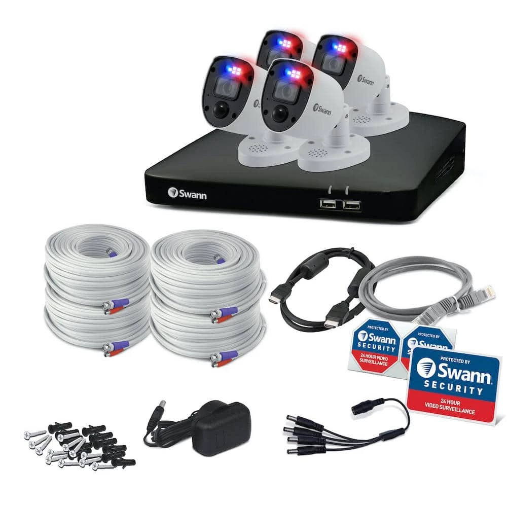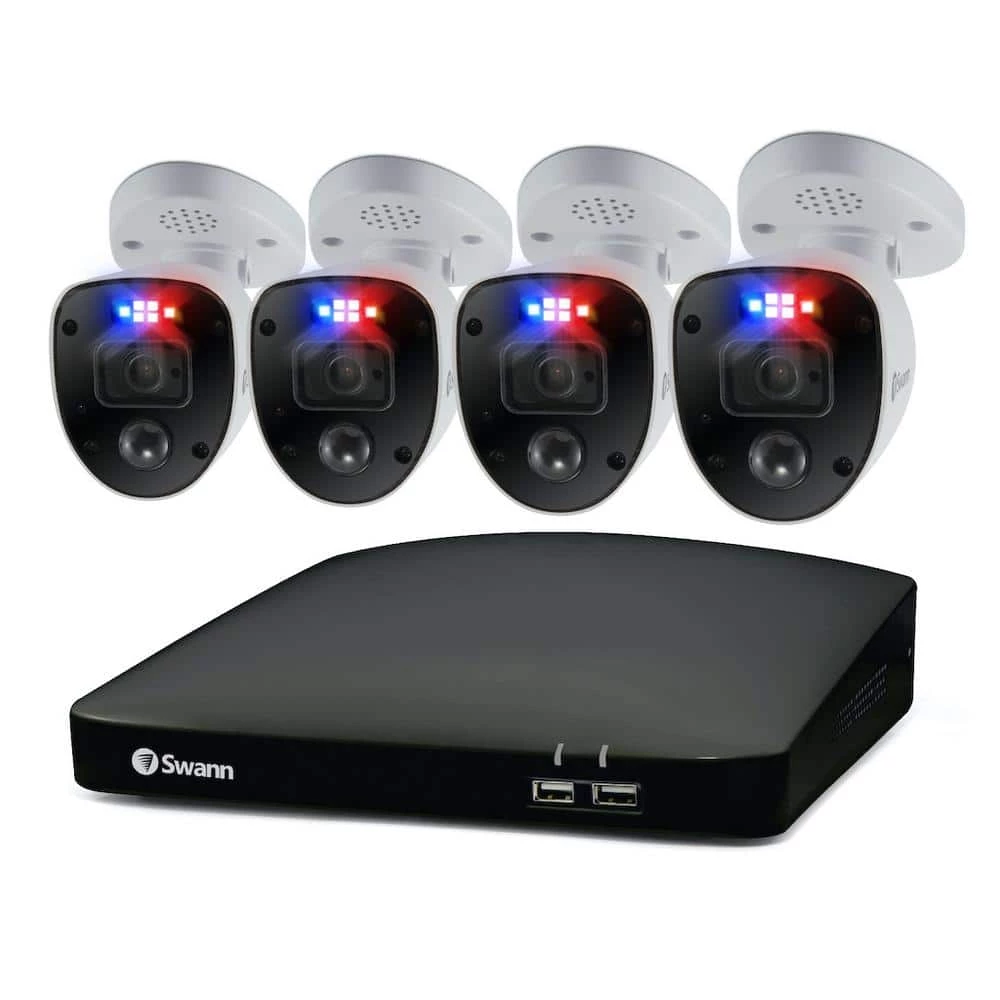 The Swann 4K Enforcer series is armed with the latest in Home Security, such as Police-Style flashing lights, Night2Day color night vision, siren, TrueDetect Heat and Motion Detection, Google and Alexa compatibility, Cloud back up storage, and much more. An 8-channel security system suits large properties, especially businesses with large premises, like retail stores, restaurants, warehouses, and large homes. Add up to 4 more cameras on this 8-Channel 2TB DVR drive. With the Swann Security app, you can even watch live or playback video on your smartphone from anywhere in the world. You can also speak to see via the Google Assistant or Alexa. The Enforcer Security System combines video surveillance and flashing lights to be an all in 1 crime prevention solution for any home or business.