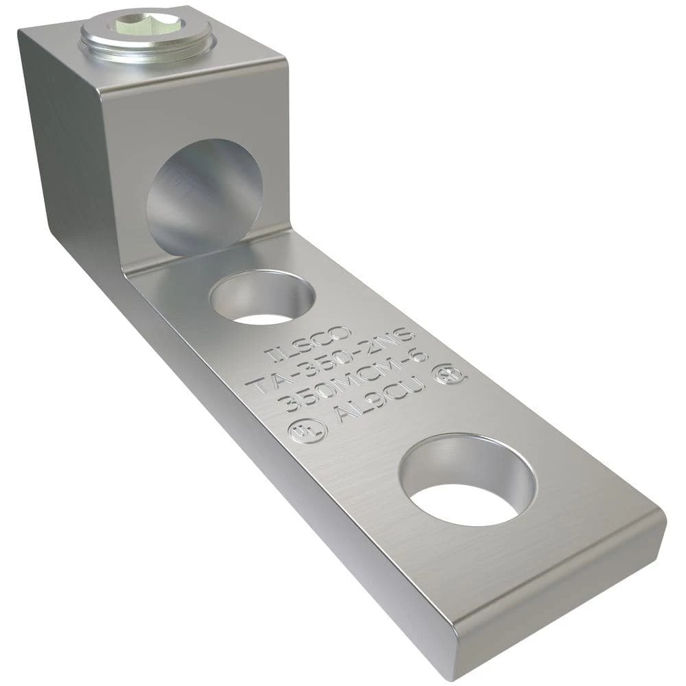 Aluminum Mechanical Lug Connector, Conductor Range 350-6, 1 Port, 2 Holes, 1/2 in. Bolt Size by ILSCO