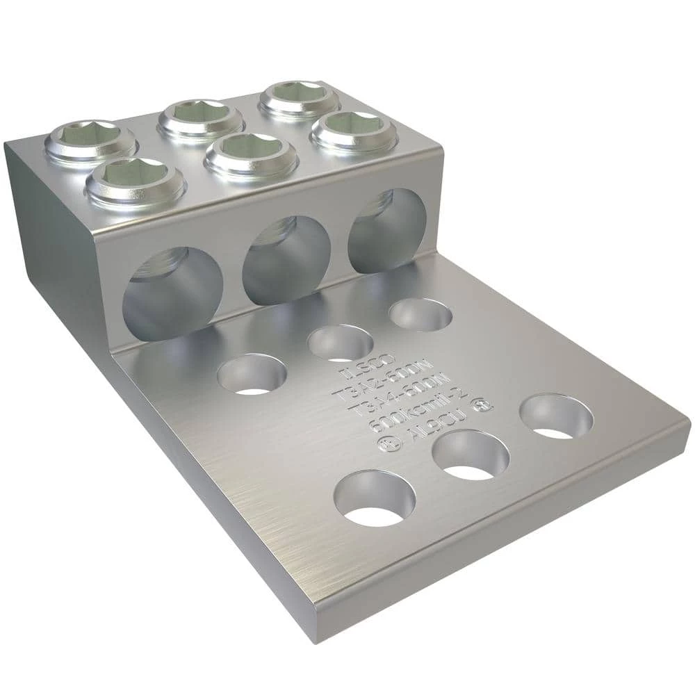Aluminum Mechanical Lug Connector, Conductor Range 600-2, 3 Ports, 6 Holes, 1/2 in. Bolt Size by ILSCO