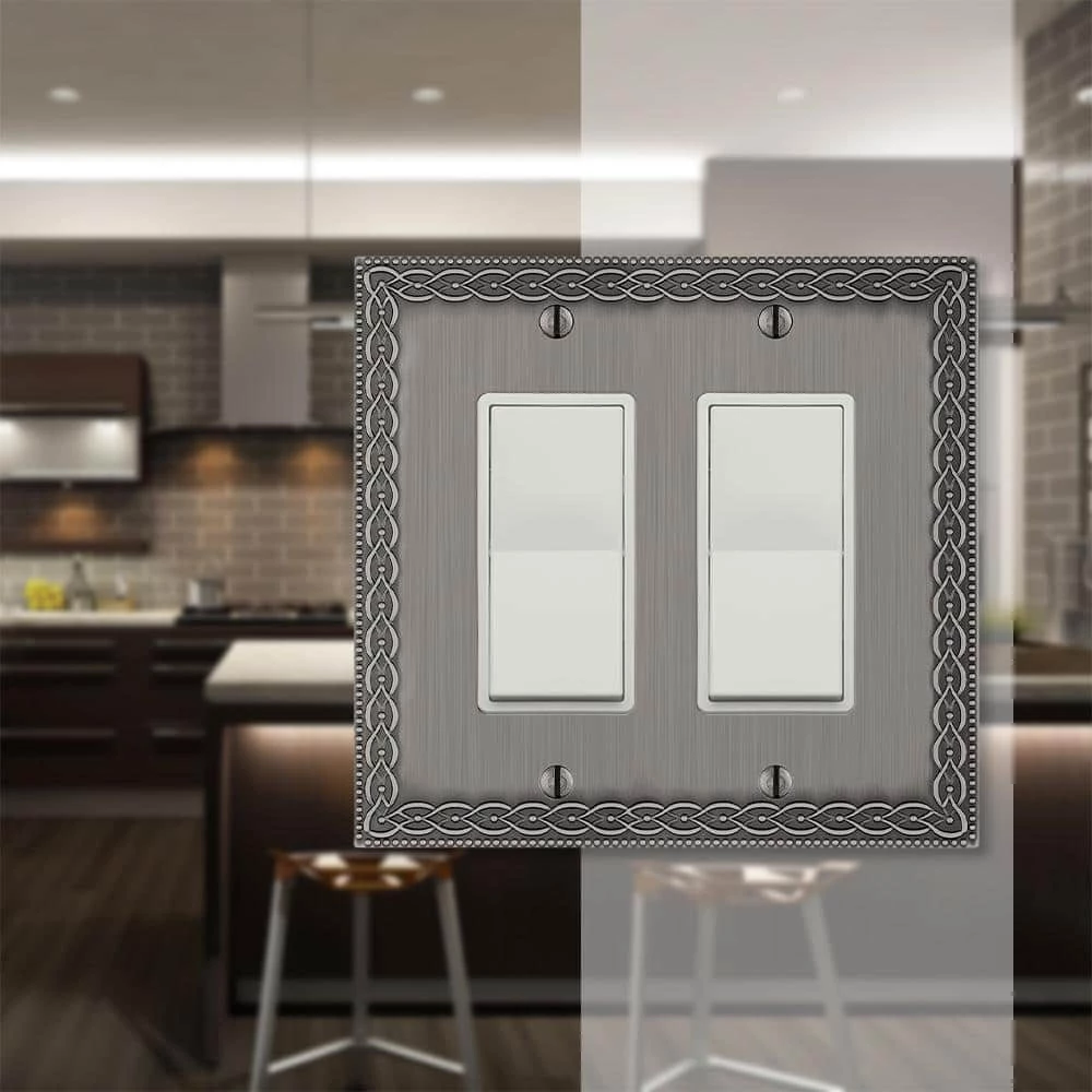 Manufactured by Amerelle, the leader in decorative wall plates and hardware. Made from durable stamped metal, this stylish wall plate does more than just cover electrical boxes, adding a simple elegance to your decor. Decorating with wall plates is an easy and inexpensive way to make an immediate impact in your home. They provide a charming upgrade to your standard plastic ones by adding a refined, decorative accent to any room in your house.