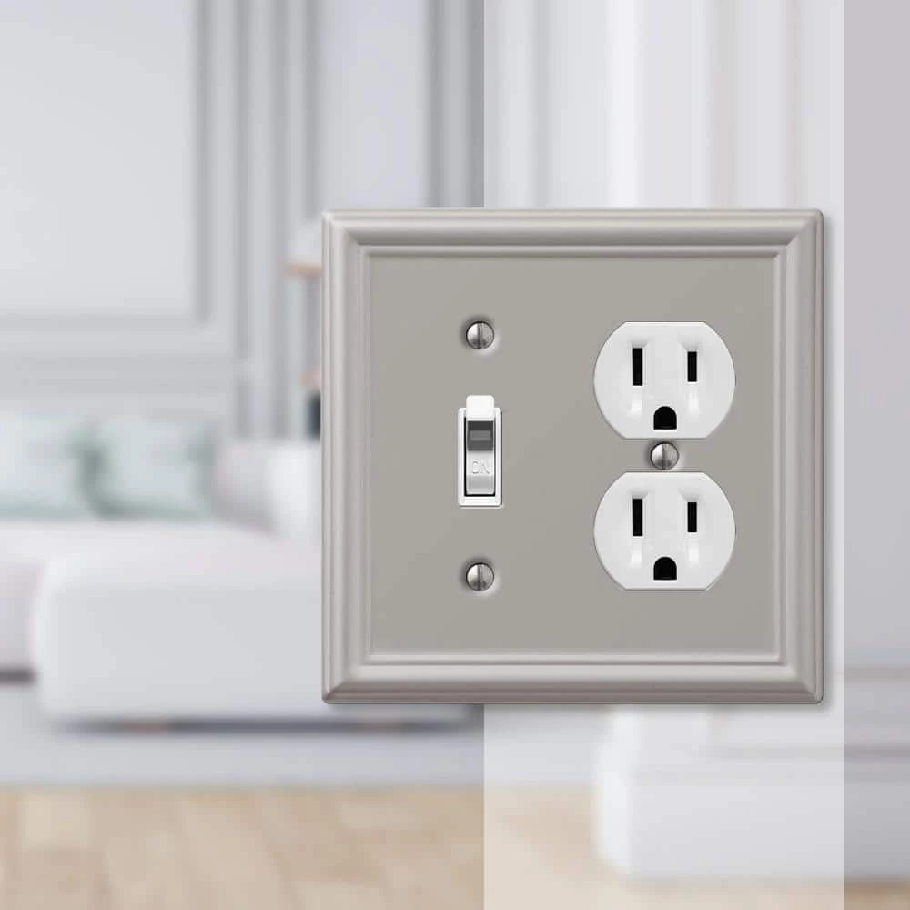 Manufactured by Amerelle, the leader in decorative wall plates and hardware. Made from durable stamped steel, this stylish wall plate does more than just cover electrical boxes, adding a simple elegance to your decor. Decorating with wall plates is an easy and inexpensive way to make an immediate impact in your home. They provide a charming upgrade to your standard plastic ones by adding a refined, decorative accent to any room in your house.