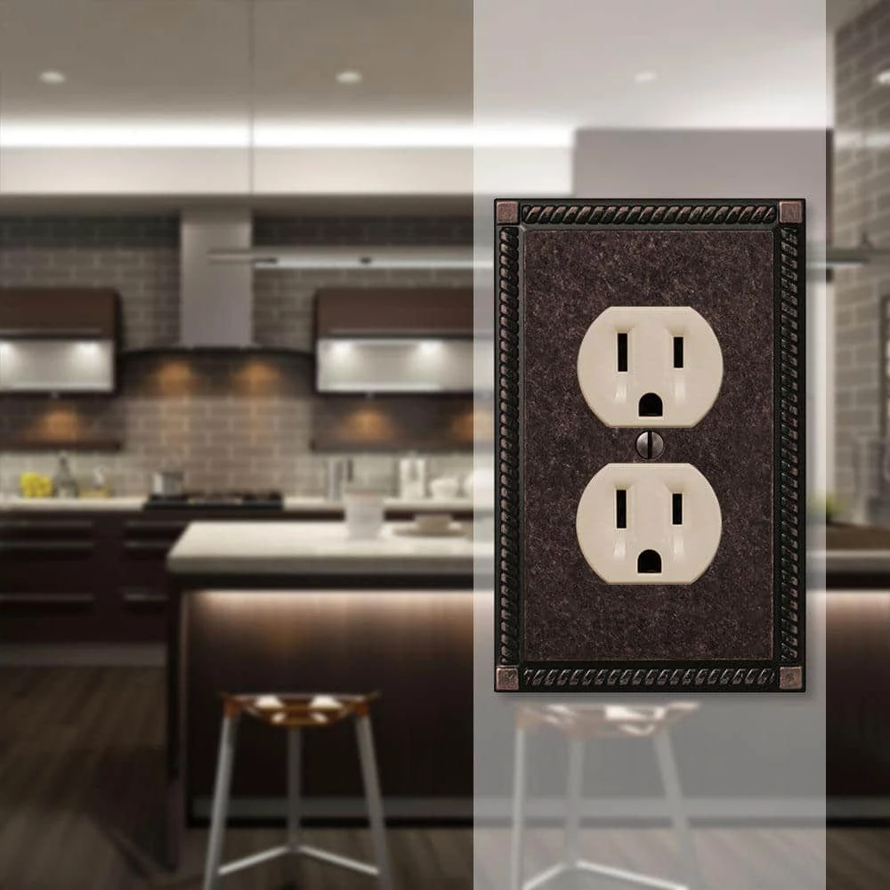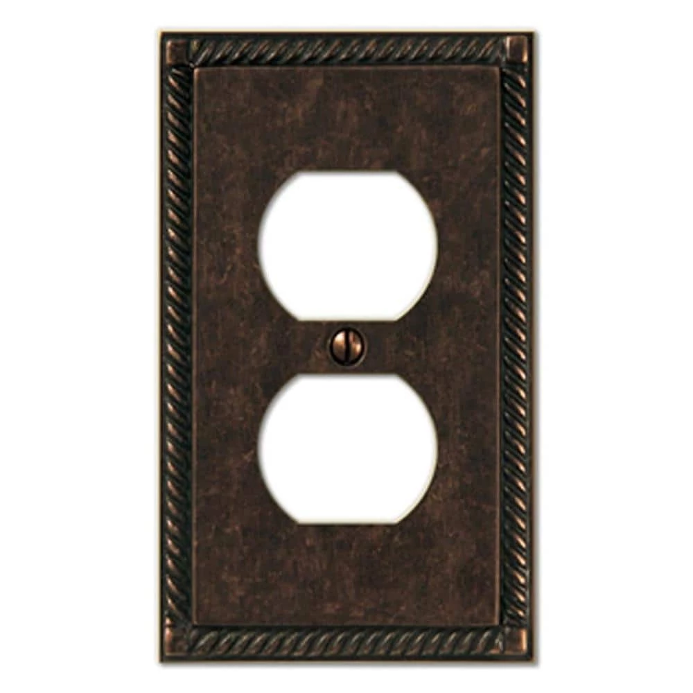 Amerelle Wallplates do more than just cover electrical boxes. They are an easy and inexpensive way to add a decorative accent to any room in your home. This Georgian Cast Metal 1-gang Aged Bronze Duplex Wall plate sports a worn look ideal for similar decor styles throughout your home. Included mounting screws ease the installation process.