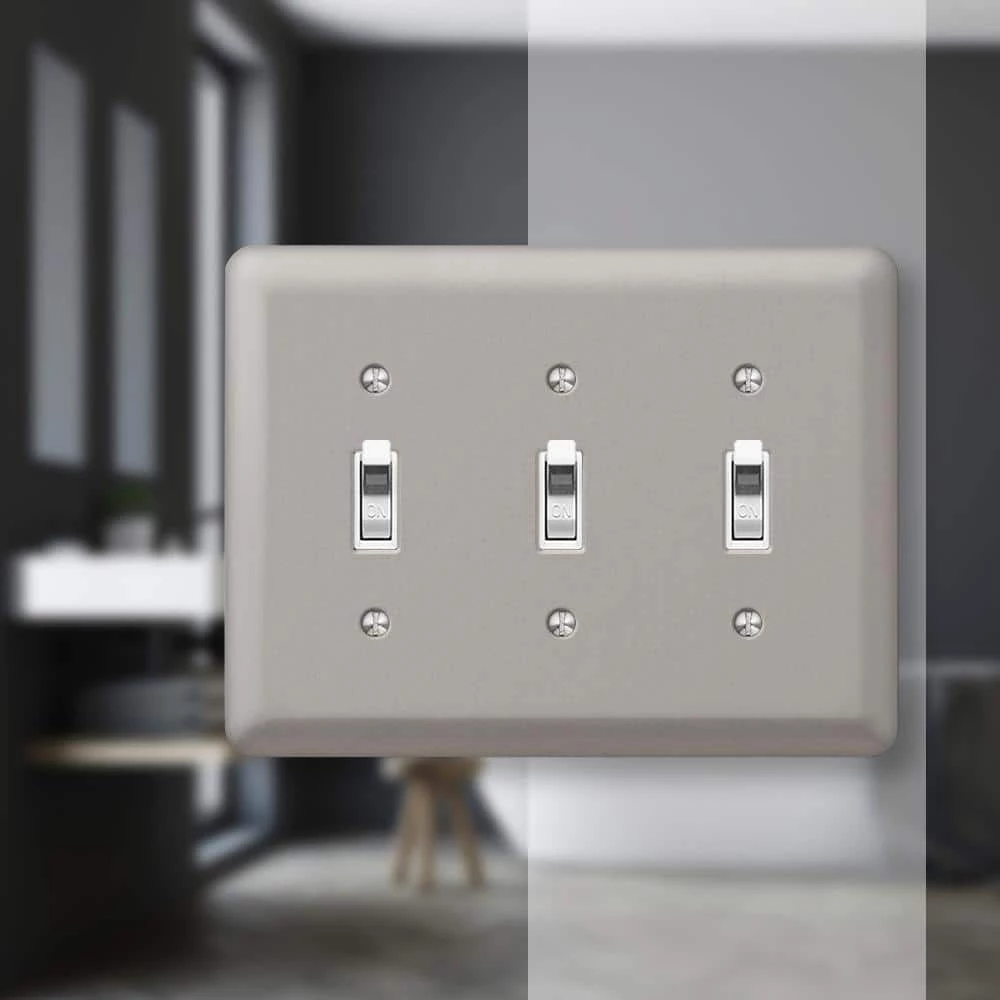 Manufactured by Amerelle, the leader in decorative wall plates and hardware. Made from durable stamped steel, this stylish wall plate does more than just cover electrical boxes, adding a simple elegance to your decor. Decorating with wall plates is an easy and inexpensive way to make an immediate impact in your home. They provide a charming upgrade to your standard plastic ones by adding a refined, decorative accent to any room in your house.