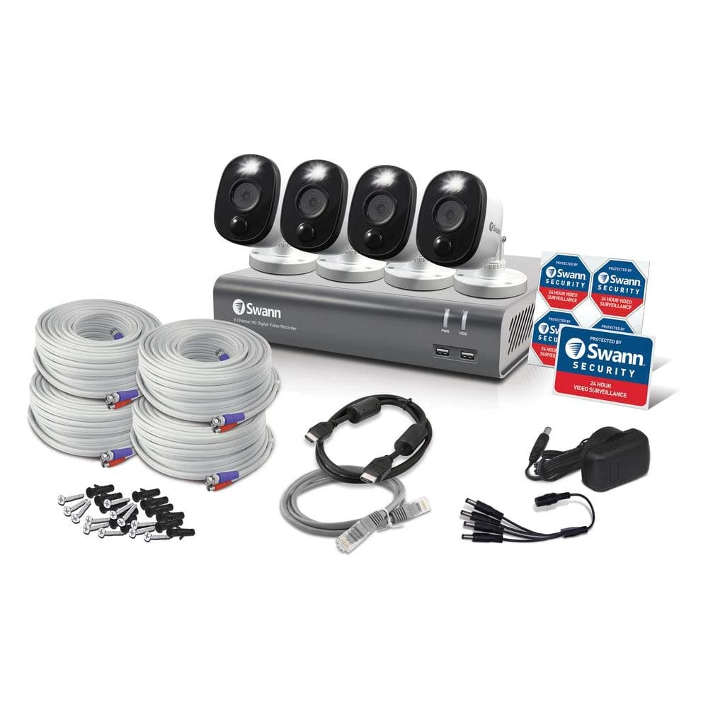 This security system is packed with the latest CCTV technology, such as weatherproof cameras with colored night vision, bright warning lights, push notifications, Dropbox integration and compatibility with the Google Assistant for voice control. Get amazing detail with 1080P Full HD. See your home on your phone, live or playback, from anywhere with the Swann Security app, while the massive pre-installed hard drive can store months of footage with no ongoing fees ever.