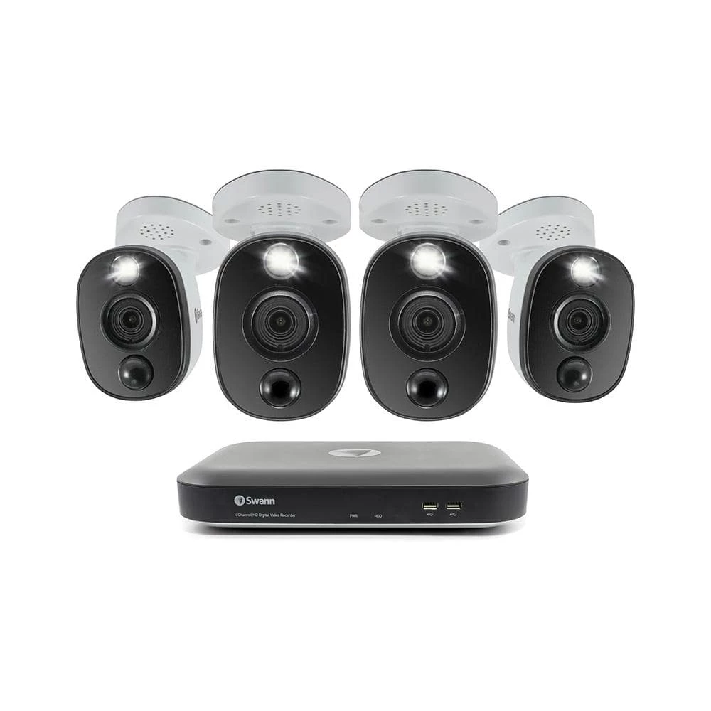 This top of the line 4 camera, 4 channel DVR-5580 wired surveillance camera system lets you see faces, logos on clothing, tattoos, stickers on boxes, license plates and powerful close-ups in amazing 4K Ultra HD. The cameras’ sturdy construction gives you 24/7 protection in rain, snow, heat and all year round. Each PRO-4KMSB camera has a 90 degree viewing angle and night vision up to 150ft in total darkness and 200ft in ambient light, so no blind spot will go unnoticed.