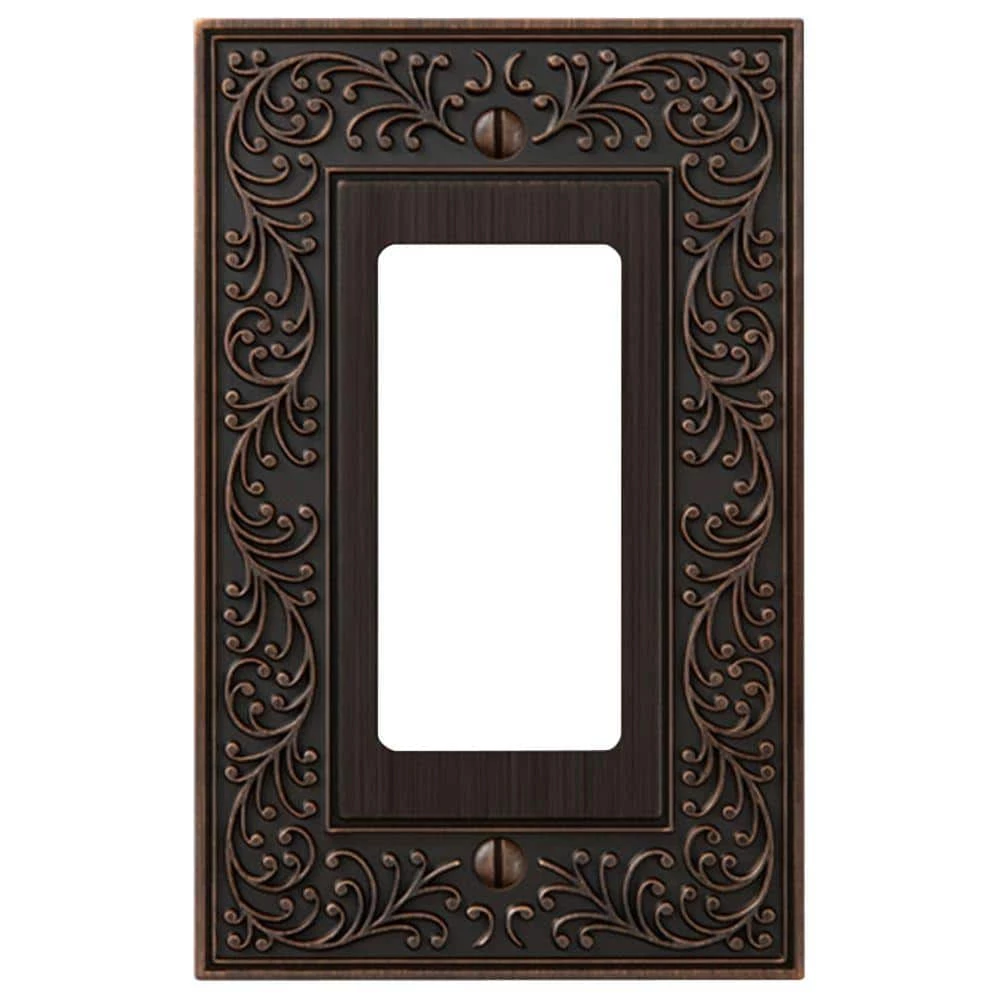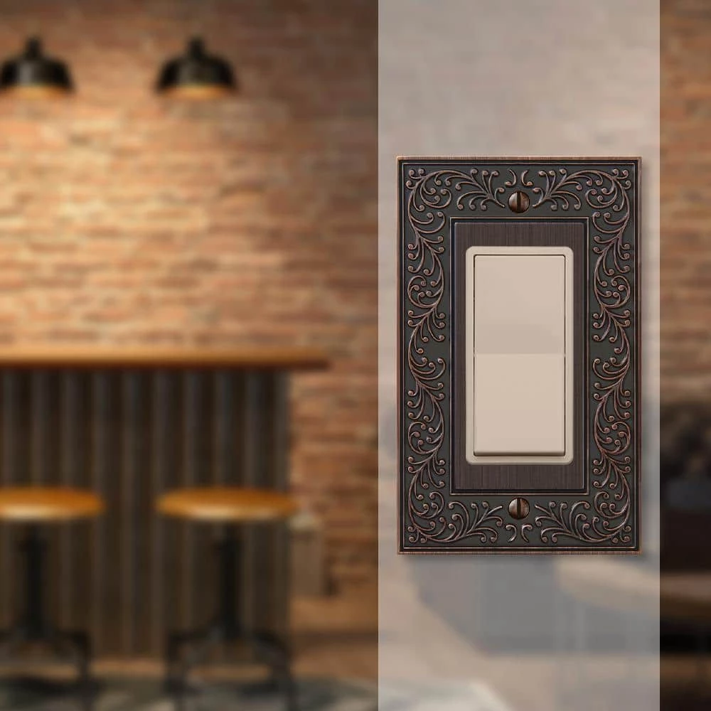 Manufactured by Amerelle, the leader in decorative wall plates and hardware. Made from durable stamped metal, this stylish wall plate does more than just cover electrical boxes, adding a simple elegance to your decor. Decorating with wall plates is an easy and inexpensive way to make an immediate impact in your home. They provide a charming upgrade to your standard plastic ones by adding a refined, decorative accent to any room in your house.