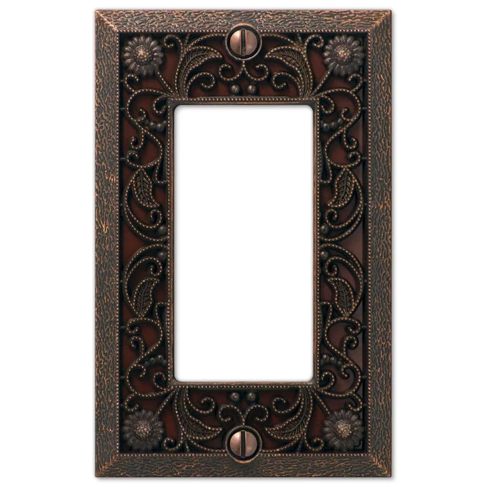 Manufactured by Amerelle, the leader in decorative wall plates and hardware. Made from durable stamped metal, this stylish wall plate does more than just cover electrical boxes, adding a simple elegance to your decor. Decorating with wall plates is an easy and inexpensive way to make an immediate impact in your home. They provide a charming upgrade to your standard plastic ones by adding a refined, decorative accent to any room in your house.