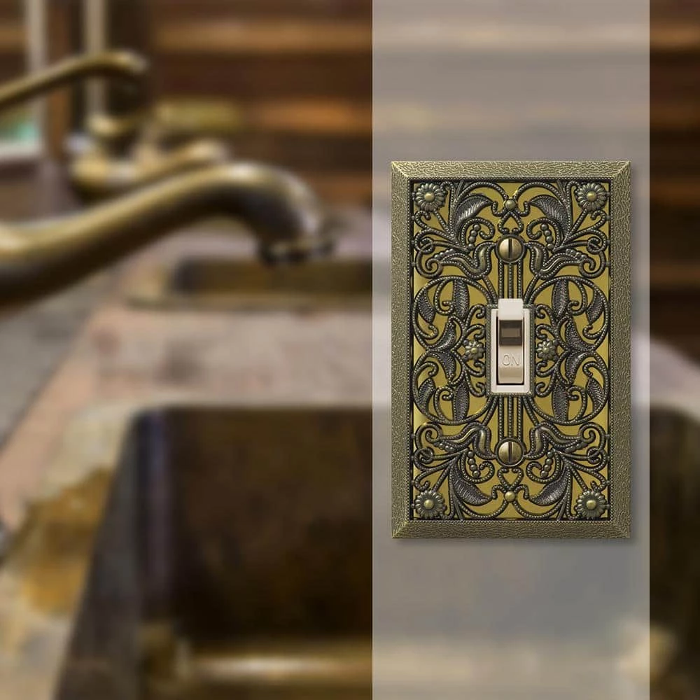 Manufactured by Amerelle, the leader in decorative wall plates and hardware. Made from durable stamped metal, this stylish wall plate does more than just cover electrical boxes, adding a simple elegance to your decor. Decorating with wall plates is an easy and inexpensive way to make an immediate impact in your home. They provide a charming upgrade to your standard plastic ones by adding a refined, decorative accent to any room in your house.