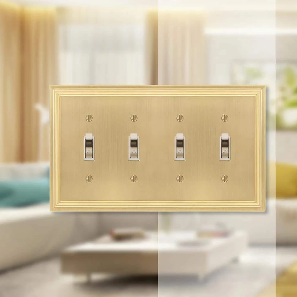 Manufactured by Amerelle, the leader in decorative wall plates and hardware. Made from durable stamped metal, this stylish wall plate does more than just cover electrical boxes, adding a simple elegance to your decor. Decorating with wall plates is an easy and inexpensive way to make an immediate impact in your home. They provide a charming upgrade to your standard plastic ones by adding a refined, decorative accent to any room in your house.
