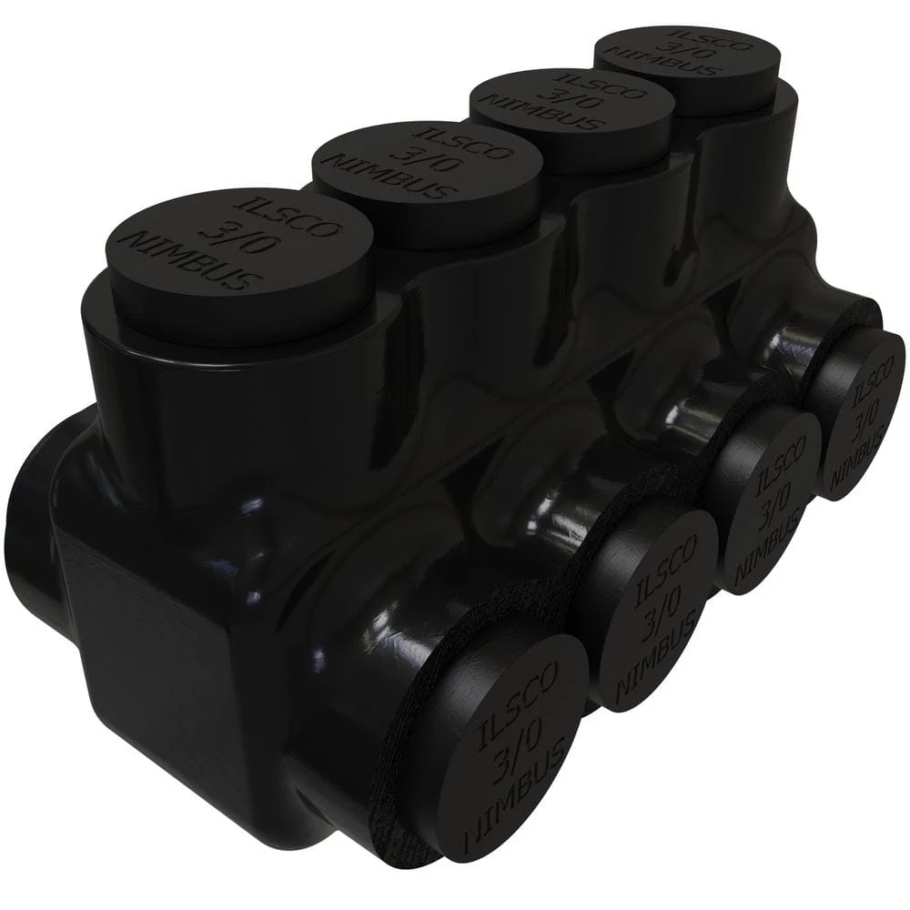 Nimbus Insulated Aluminum Multi-Tap Connector, Conductor Range 3/0-6, 4-Ports, Dual Sided Entry, Tin Plated by ILSCO