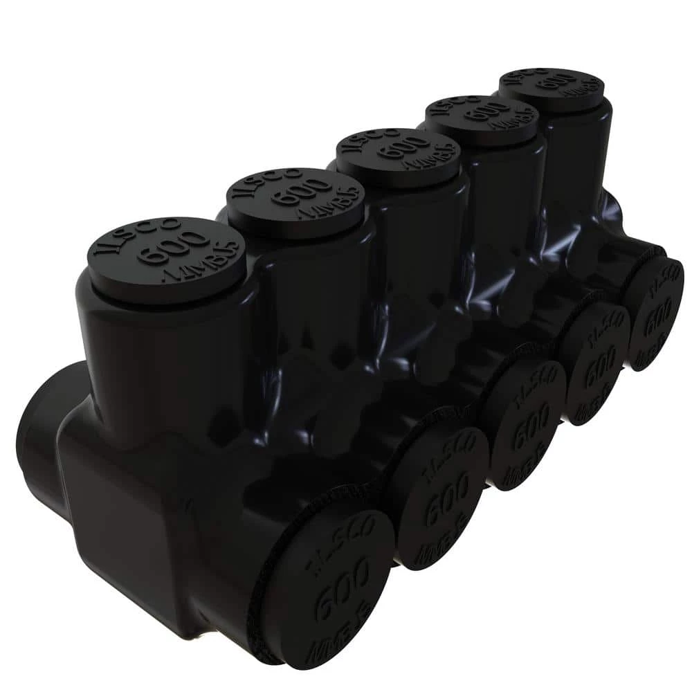 Nimbus Insulated Aluminum Multi-Tap Connector, Conductor Range 600-4, 5-Ports, Dual Sided Entry, Tin Plated by ILSCO