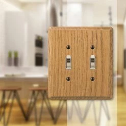 Contemporary 2 Gang Toggle Wood Wall Plate – Light Oak by AMERELLE