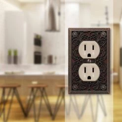 Filigree 1 Gang Toggle Metal Wall Plate – Aged Bronze by AMERELLE
