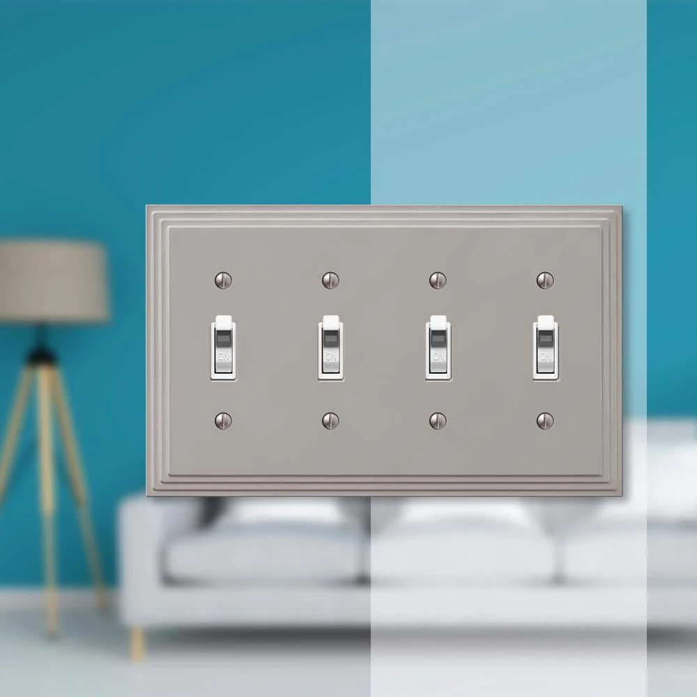 Manufactured by Amerelle, the leader in decorative wall plates and hardware. Made from durable stamped metal, this stylish wall plate does more than just cover electrical boxes, adding a simple elegance to your decor. Decorating with wall plates is an easy and inexpensive way to make an immediate impact in your home. They provide a charming upgrade to your standard plastic ones by adding a refined, decorative accent to any room in your house.